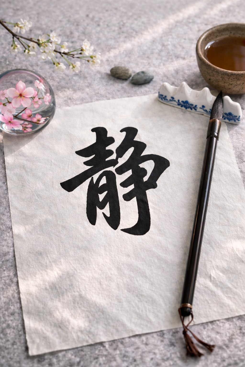 The Chinese character Jing (静) carries the meaning of quiet, calm, and stillness.
